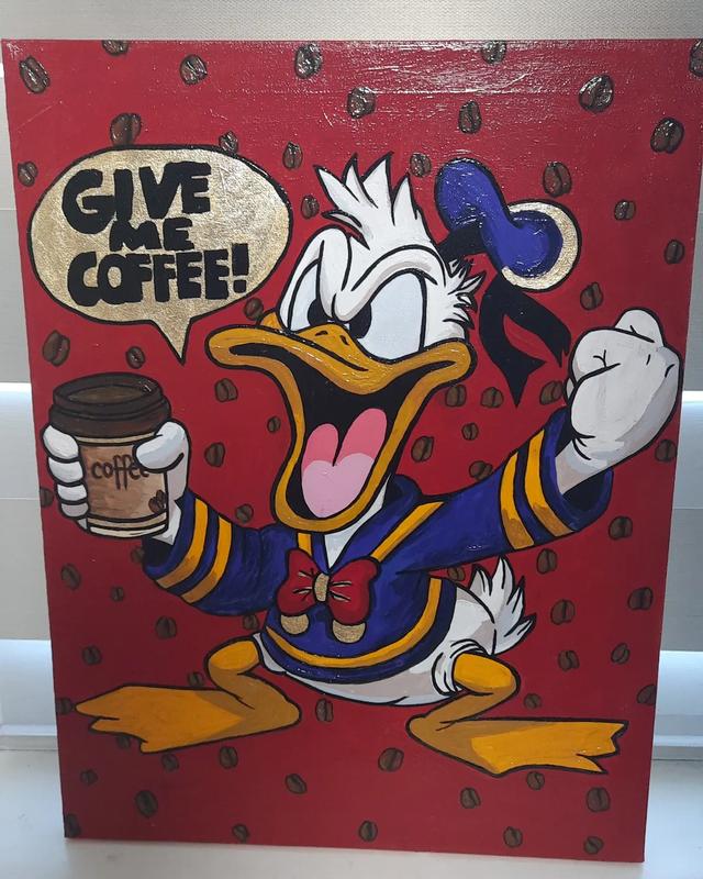 Картина :"Кавова криза Дональда Дака "🖼 Полотно : 30×40 см Материал : Акрил🎨