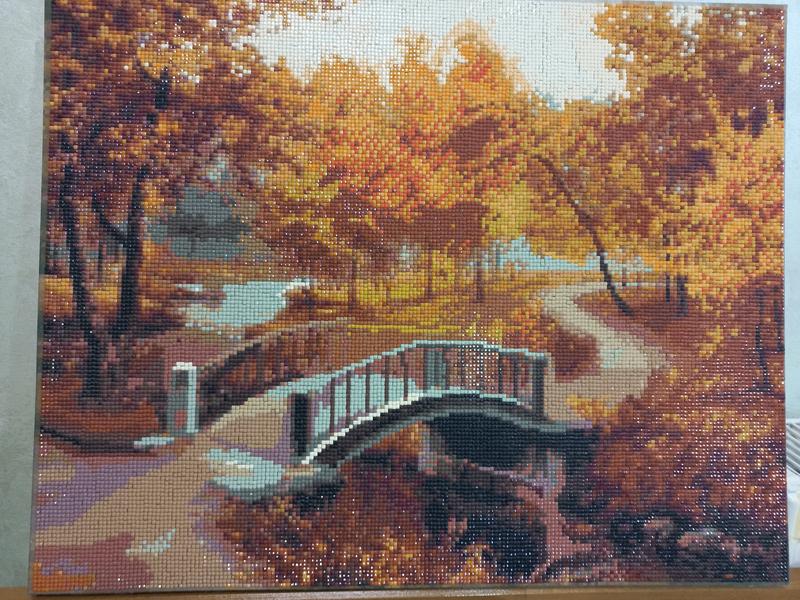 Картина стразами "Золота осень", ручная работа на учебнике, размер 50×40см