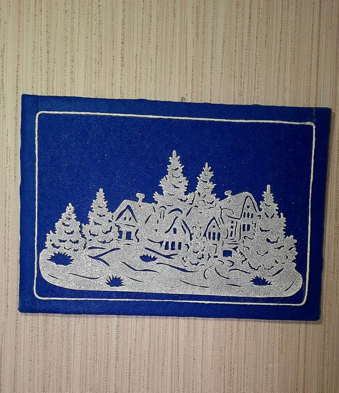 Картина зимова. Декор для дома, комнаты, на выставку. Изготовлена из фетра и глиттерного фоамирана серебристого цвета. Размер 23*33 см Техника - вытиранка. Ручная работа, в одном виде.