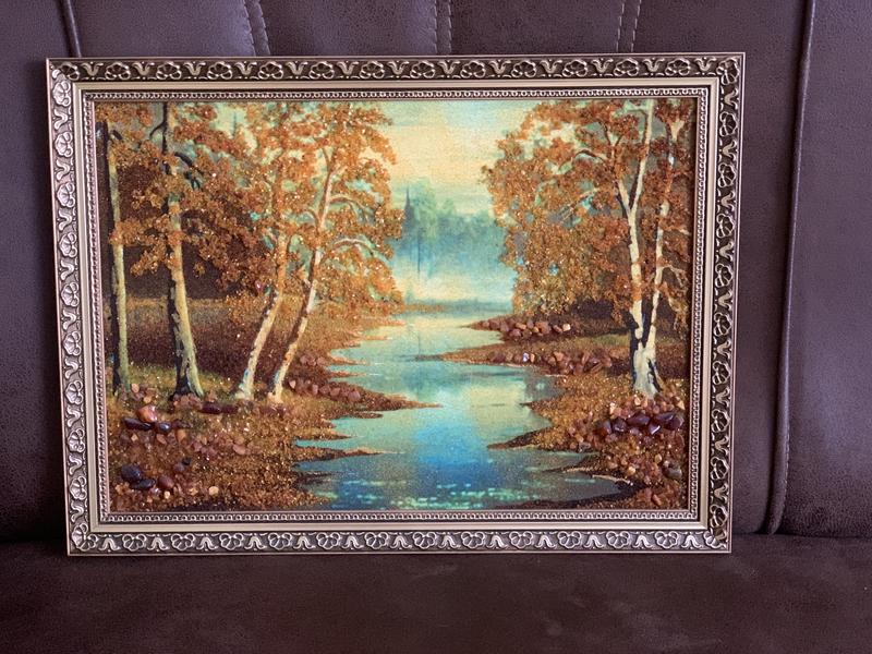 Картина з бурштину,чудове поєднання кольорів та натурального каменю