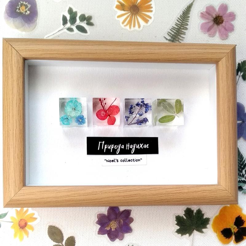 Размер картины: 17×12 см Есть крепление на стену и еще одно крепление, чтобы поставить картину на стол. ✨В картинах по 4 кубика из ювелирной смолы, внутри которых проживает настоящая ромашка, роза, гортензия и другие растения. 🤗Меня всегда вдохновляла природа. А о том, как я ее люблю, то словами не передать. И даже в прохладную, зимнюю пору можно увидеть цветы, как например, моя матиола под снегом. Маленькая мелочь словно, но какое это счастье увидеть такое чудо. А таких мелочей есть много еще. ✨И хочу передать этот смысл в свои картины. Как маленькое напоминание, что мы можем найти радость в том, что всегда рядом с нами - в природе☺