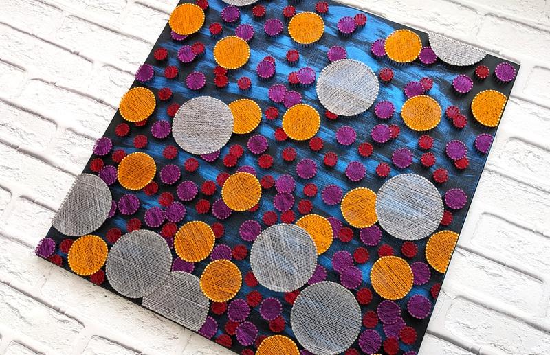 Картина string art, картина конфетті, панно нитками та цвяхами, яскраві кола картина, карт...