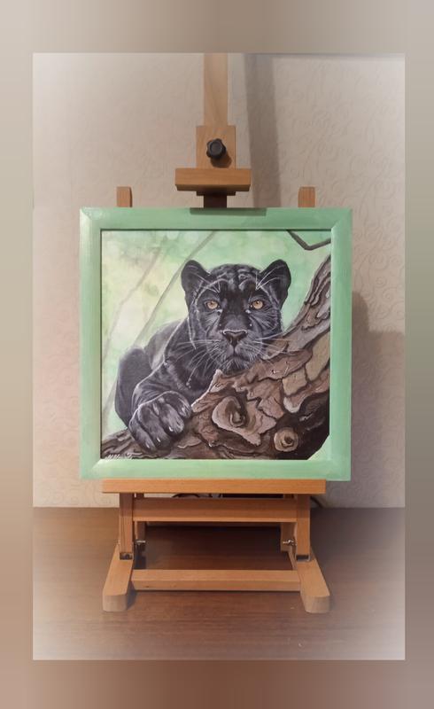 Картина “Хижак”. Выполнена акриловыми красками на грунтовом ДВП, покрыта двумя слоями лака. Размер полотна 30 на 30 см, деревянная рамка 2,5 см