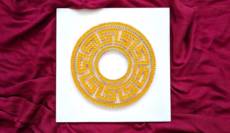Картина стрінг арт вічність у золоті, золотий меандр, грецький декор
