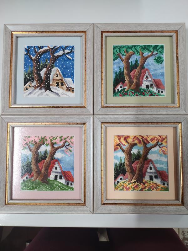 Набор из картин вышитых крестиком времени года
