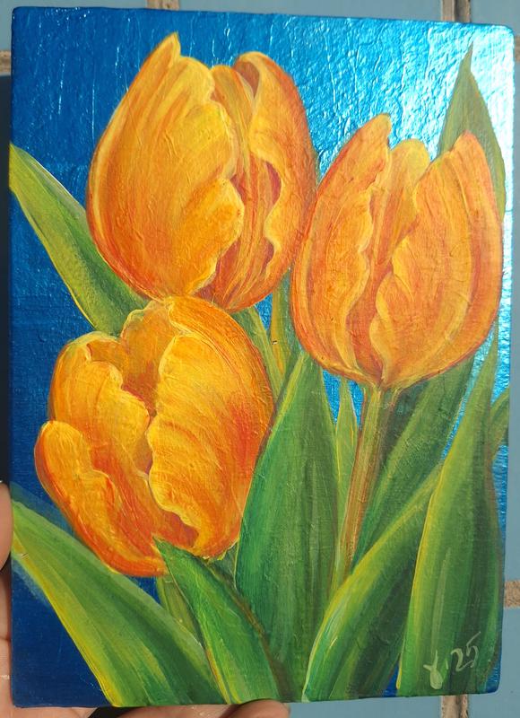 выполнена акрилом на грунтованом двп, размер 13х18, фон перламутровый