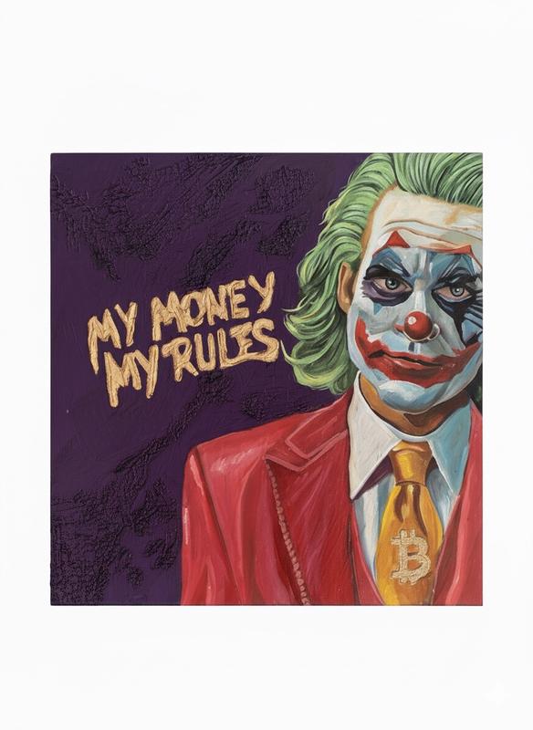 Картина олійними фарбами “My Money — My Rules”, 60×60 см, ручна робота. Яскравий образ Джокера в сучасному виконанні з символікою Bitcoin — це не просто картина, а потужне послання про впевненість, свободу вибору, фінансову незалежність і віру у власні правила. Ідеально підійде для тих, хто цікавиться криптовалютою, поп-артом, NFT, Bitcoin, сучасним мистецтвом і самовираженням. Картина виконана в техніці багатошарового деталізованого живопису — витрачено понад місяць кропіткої роботи. Кожна деталь промальована вручну високоякісними оліями на лляному полотні з надійною дерев’яною рамою. Полотно прогрунтовано й проклеєно професійно. Використовувалися преміальні фарби, які не втрачають яскравості з часом. Ідеально для: 🖼 Декору сучасного інтер’єру (лофт, мінімалізм, поп-арт, урбан стиль) 💼 Офісу, коворкінгу, студії, салону краси, крипто-простору 🎁 Подарунка для чоловіка, друга, бізнесмена, криптоентузіаста Картина привертає увагу, мотивує, заряджає на успіх і дію. Україна, Київ, 2025 рік. Авторська, у єдиному екземплярі.