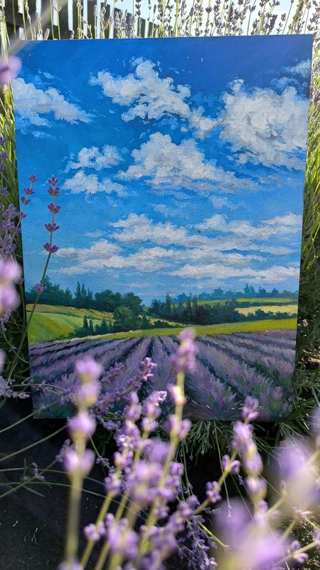 "Лавандове поле Размер: 30×40 см Материал: масляные краски, холст на картоне Картина изображает спокойное лавандовое поле. Насыщенные цвета и эмоциональная атмосфера работы передают красоту природы и летнее настроение. Идеально подойдет для декора дома, студии или подарка родным. 💳 Оплата: карта