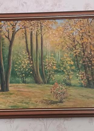 Картина "Осінь" маслом. 42×32,5(безпосередньо малюнок), з рамкою -розміри на фото. --- 🖼️ Осіння симфонія в лісі — авторська картина в рамі Зануртесь у спокійний осінній ліс, де золотисте листя м’яко опадає на зелену галявину, а світло пробивається крізь високі дерева, створюючи атмосферу затишку й гармонії. Ця картина передає чарівність природи в період її найтепліших барв — осені. 🔸 Характеристики: - Сюжет: Лісова сцена з високими деревами, жовтим і зеленим листям, кущем на передньому плані - Техніка: Олійний живопис , ручна робота - Розміри: приблизно 49 × 42 см (включно з рамою) - Рама: Дерев’яна, коричнева з внутрішнім золотим оздобленням, додає елегантності та завершеності - Стан: Відмінний, без пошкоджень 🔹 Ідеально для: - Декору вітальні, кабінету або затишного куточка для читання - Подарунка для поціновувачів природи та мистецтва - Колекціонерів авторських пейзажів --