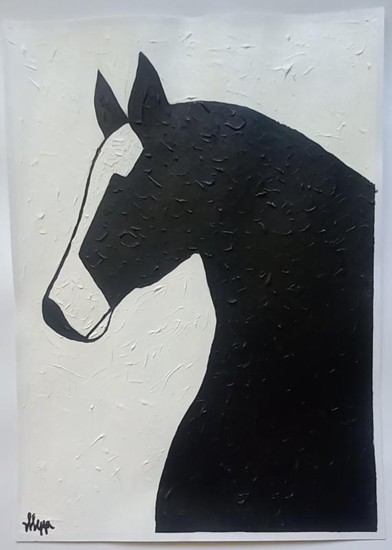 Лошадка. Минимализм. Размер 53,5×38,5 см. Бумага для акрила. Акрил.