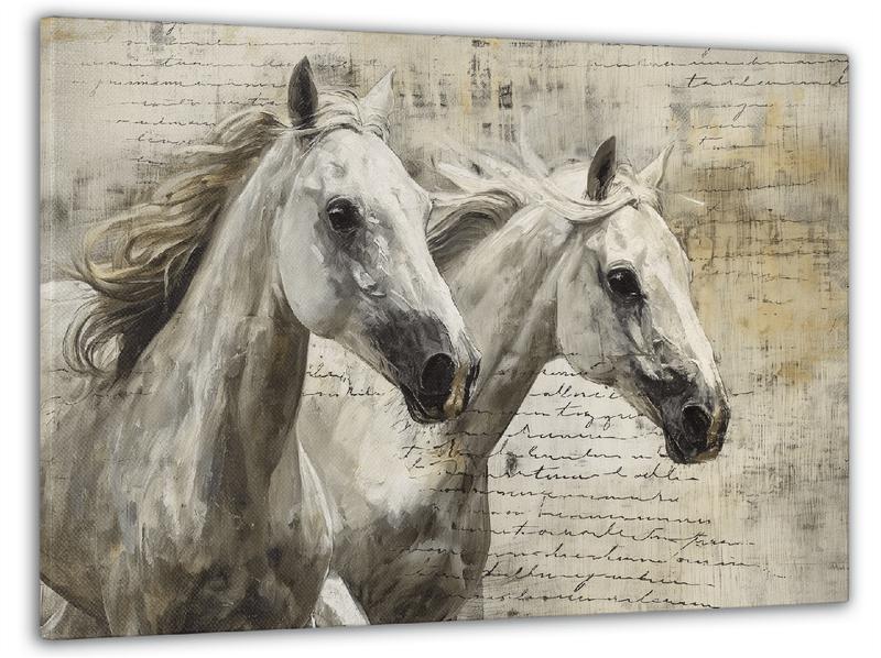 Картина на стену в гостиную / спальню "пара лошадей в ретро-стиле" 60x100 см mn10115