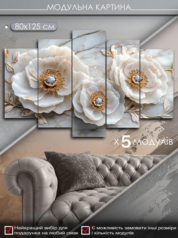 Модульная картина mako "хрустальные цветы" 80x125 см mk50539