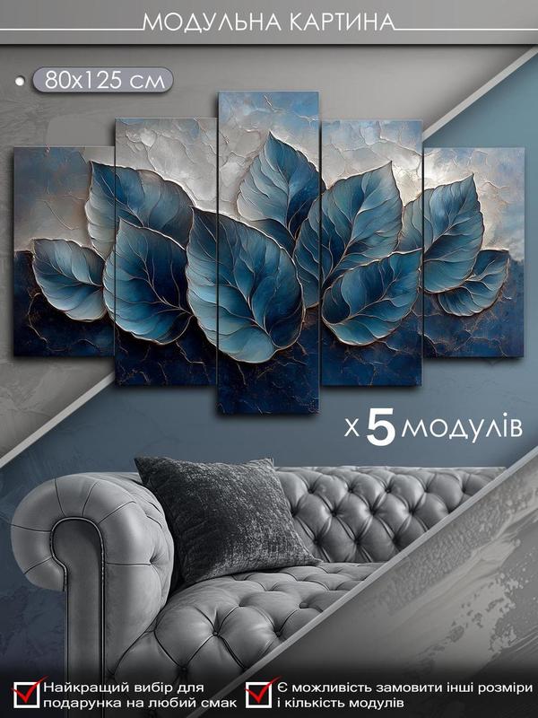 Модульная картина mako "синие листья" 80x125 см mk50634