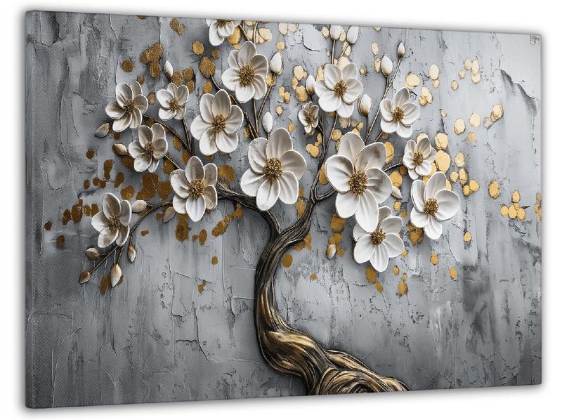 Картина на стену в гостиную/спальню с 3d-эффектом "древо вдохновения на сером фоне" 60x100...