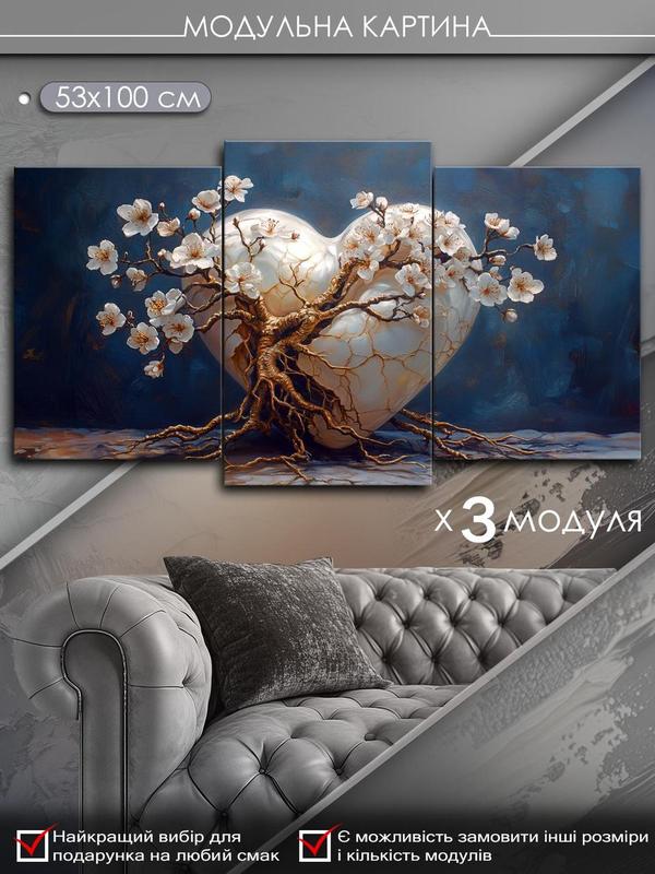 Модульна картина mako "дерево серця - рожеве" 53x100 см mk30632