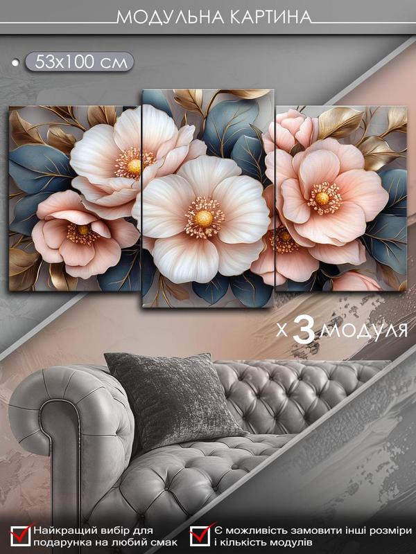 Модульная картина mako "цветы любви" 53x100 см mk30551