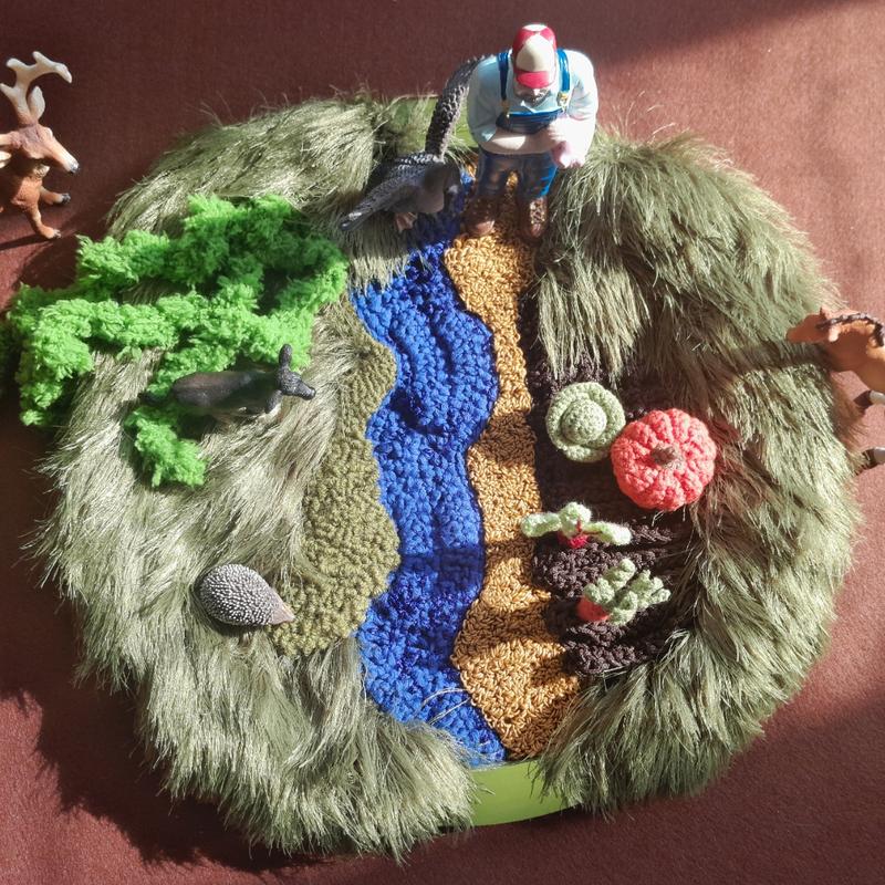 Круглая картина мох, игровая панель на деревянной основе.Стильный и современный элемент декора и одновременно основа для игры и учебы. Артбортд изготовлен из пряжи на деревянной основе. Диаметр 30 см. Имеет 2 грядки, реку, тропу, пушистую траву мох. Дети могут расставлять на этом борде разные фигурки, атрибуты и материалы. Свободная игра, визуальное и тактильное удовольствие обязательно| обязательно заинтересуют детей и их родителей. В этом мире может произойти множество ролевых игр! Фигурки не входят в набор. Можно заказать другого размера и формы под интересы и игрушки конкретного ребенка. Строки изготовления обсуждаются индивидуально. Отлично подходит для игры с любыми мелкими игрушками (типа playmobil, shleich), животными (лес, ферма), машинками, полимерными овощами, | рыбалка| и т.д.
