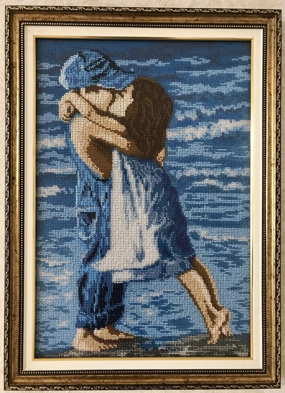Картина з бісеру «Перший поцілунок» Розмір роботи 33*46 см Ширина рамки 3,5 см Вишита з чеського бісеру, антиблік скло