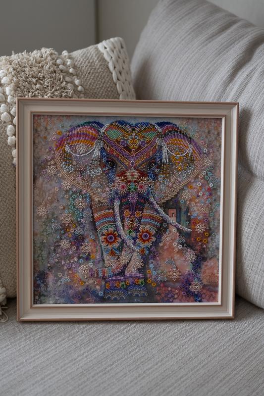 Ексклюзивна картина ручної роботи, вишита чеським бісером PRECIOSA на полотні в рамці. ✅ Розмір з рамкою — 40 × 40 см ✅ Кількість кольорів — 18 ✅ Є кріплення для підвішування ✨ Символізм: Слон — це один із найсильніших східних символів, який уособлює мудрість, стійкість, вірність і достаток. Вважається, що картина зі слоном притягує удачу в дім, дарує гармонію й захист, а також відкриває потік фінансового благополуччя. 🎨 Значення кольорів: • Фіолетовий — духовність, мудрість, внутрішня сила • Золотий — багатство, процвітання, енергія сонця • Блакитний — спокій, рівновага і довіра • Рожевий — ніжність, любов і гармонія в родині • Зелений — оновлення, ріст і стабільність ✨ Ідеально підходить як: • оберіг у дім чи офіс • оригінальний подарунок на день народження чи новосілля • яскравий декор у вітальню, спальню чи робочий кабінет 📌 Унікальна ручна робота. Другої такої картини немає!
