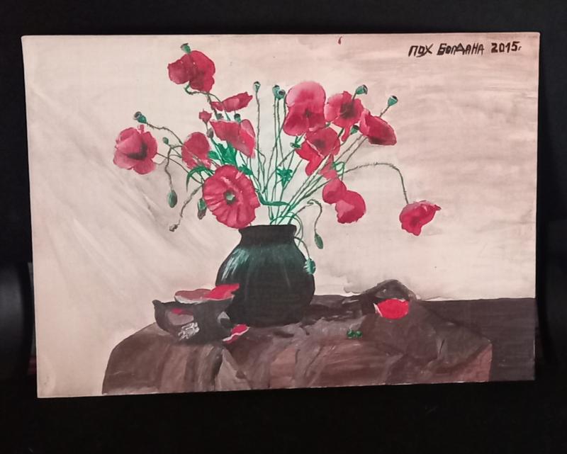 картина Маки,полотно на картоне,35 на 25 см,акрил,без рамки,2015 год
