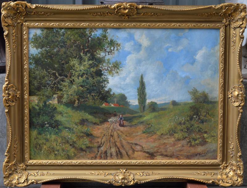 Подписка W. Cube "Сельский пейзаж" 1900. Полотно, растительное масло. Размер полотна 70х100 см. Европейская живопись.