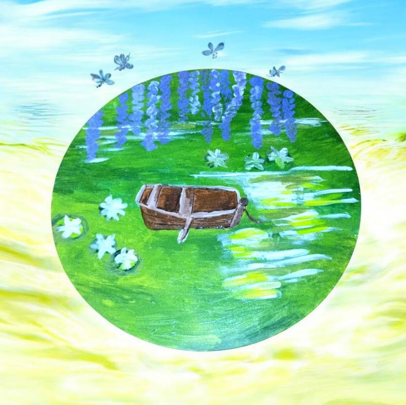 Міні картина "Пливе човен " Материалы:ДВП, краски акриловые,лак