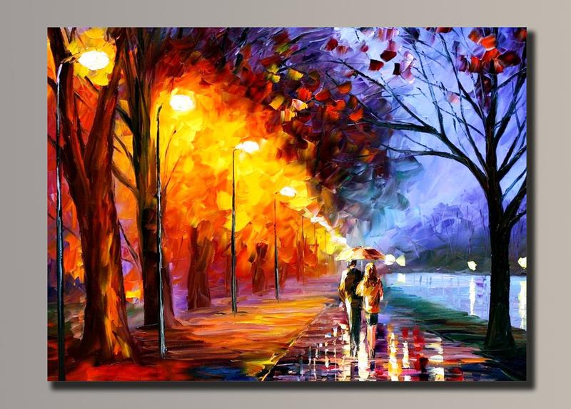 "прогулка под дождем 2" картина на холсте для интерьера 72.5, 54