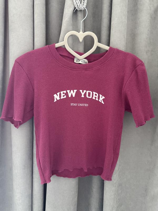 Бордовий трикотажний топ із ребристої тканини. Має декоративні хвилясті краї на рукавах та подолі, що додають жіночності.