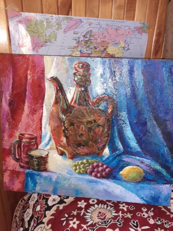 Натюрморт, большого размера 66см × 54см. Очень красивая, подходит для подарка или для себя в интерьер. Написанная мастехином,профессионалом. Доставка новой и укр.поч. оплата как вам подобрано. выглядит очень круто, камера не передает весь колорит и сочность, как заиансирует, добавок фото.Цветной, яркий,передающий Украинский дух стариных предметов