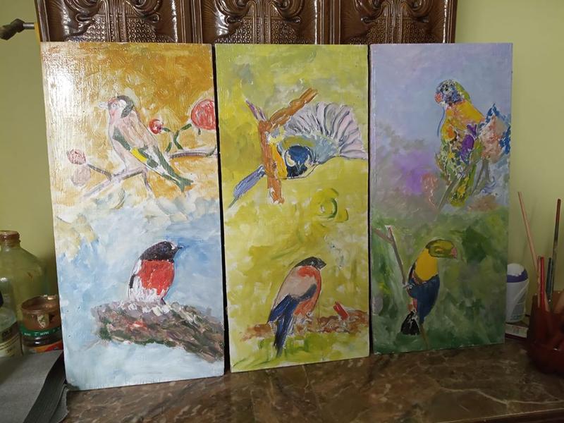 нові картини триптих, виконані олійними фарбами по дереву, загальний розмір 72 на 52 см, постімпресіонізм