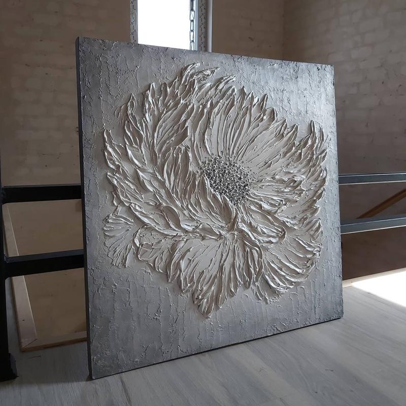 Нежная, блестящая, текстурная интерьерная картина, большая и эффектная, 60 х 60, текстурная паста, акрил. Текстурная паста дает твердую, жесткую фактуру, слой акрила устойчив к влаге, можно трогать, протирать пыль.