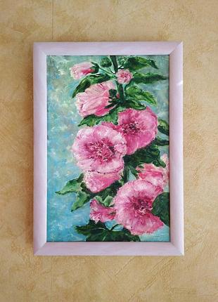 Картина "Мальви" полотно на підрамнику 20х30 в рамці, олія
