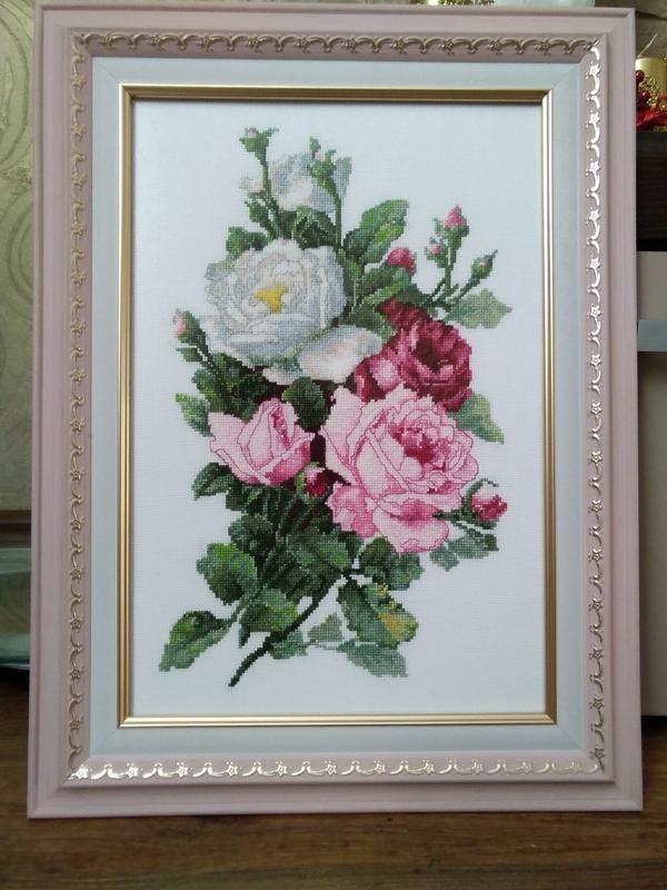 Вышивка ручной работы крестом, выполненная в багетной мастерской, стекло антиблик..