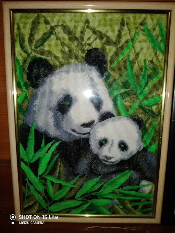 Картина ,, Панда с малышом,, ,ручная работа, выполнена крестикои в цветном варианте. 20*29.
