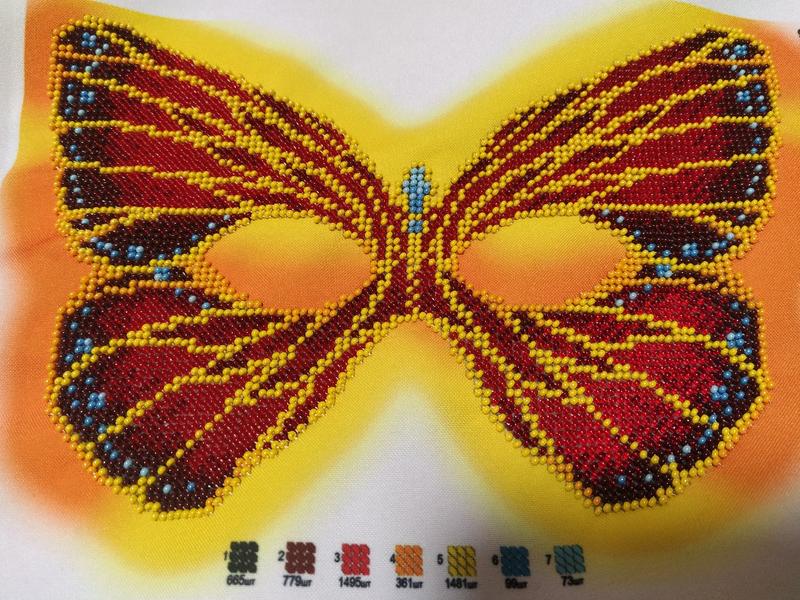 У МЕНЯ В НАЛИЧИИ. МАСКА.Вышивка бисером. Размер 23*30 см.Ткань габардин.Можно сделать маску на карнавал,утренник или установить в рамку.