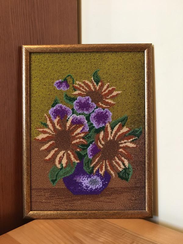 Картина «Подсолнухи», изделие ручной работы , выполнено полностью из бисера. Размер 29*38 см {вместе с рамкой}