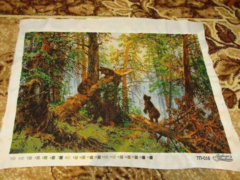 Картина вишита чеським бісером. "Утро в сосновому бору"