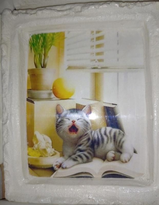 холодная керамика, 12*9 см, рисунок нанесен на тыльную сторону мягкого стекла зеркально и стационарно залит в рамку