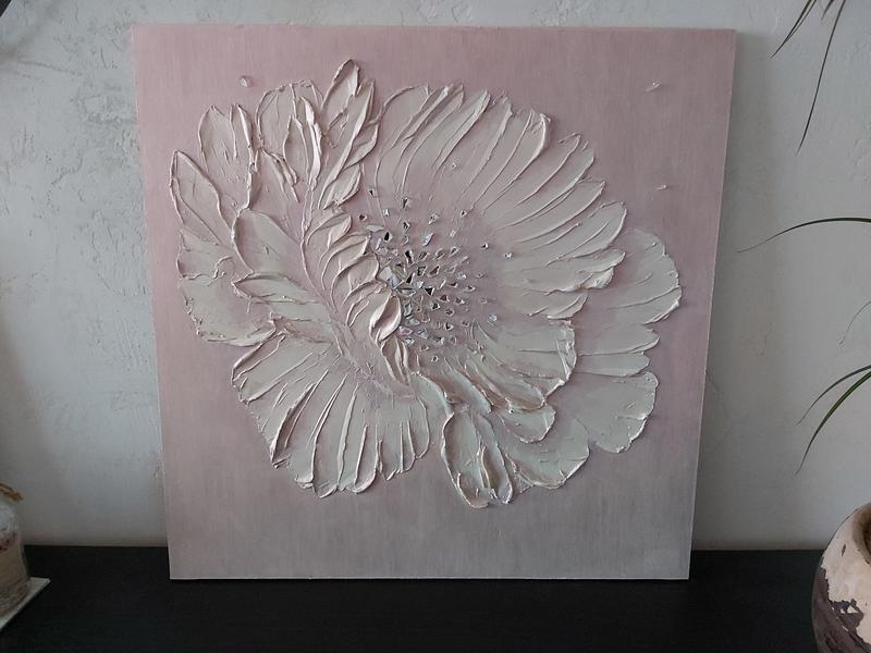 Нежный, крупный, перламутровый, розово - бежевый хамелеон, волшебный цветок украсит ваш интерьер, или станет прекрасным подарком 60х60 Текстурная паста, акрил, зеркальная крошка