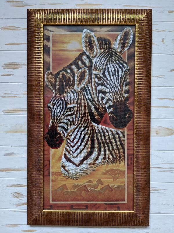 Картина виконана в техніці вишивки бісером. Оформлена в багет та скло. Розмір 30*52 см