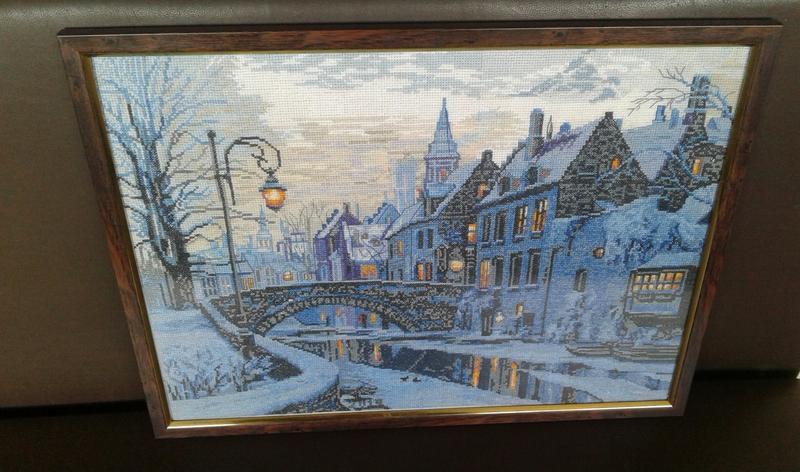 Картина ручної роботи вишита повним хрестом в техніці "хрест", повна зашивання.Нитки муліне,для більшої виразності застосований бекстич.Пластмасова Рамка зі склом,придбана в торговельній мережі.Полотно заправлений у рамку за допомогою скоб із застосуванням задньої стінки(на фото чорна з різними картинками).Є кріплення.Розмір з рамкою 33*43 див.
