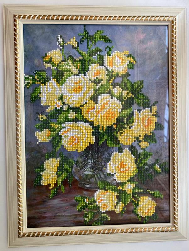 Желтые розы,размер 31 * 41см.Алмазная выкладка.Оформлена в багетную рамку.Розы по фен-шуй олицетворяют любовь и верность. Эти роскошные и источающие невероятное благоухание цветы аккумулируют благоприятную энергетику и рассеивают негативную, привлекают удачу, сглаживают конфликтные ситуации и создают атмосферу гармонии и взаимопонимания в доме.