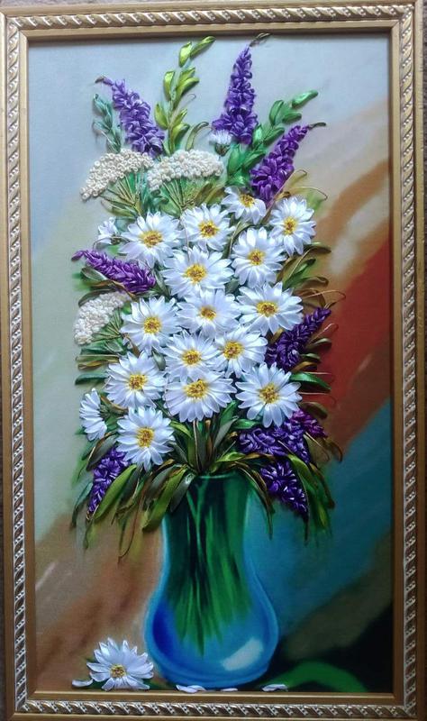 Картина вышита атласными лентами, бисером и шелком на качественном принте. Какой подарок может быть лучше, чем сделанный своими руками.Размер 25*50
