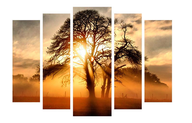 Модульная картина на холсте на стену для интерьера/спальни/офиса dk закат сквозь ветви 125...