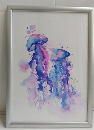 Медуза выполнена на бумаге А4 профессиональными красками Плотность бумаги 200 Продаётся без рамки ❌