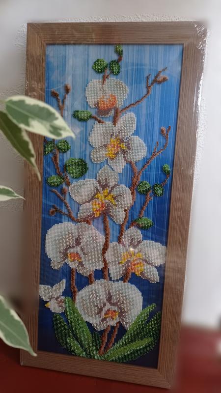Картина вишита бісером. Ручна робота! Стане чудовим доповненням до вашого інтер'єру, додасть затишку та атмосферності вашому дому! Вишита орхідея в домі допоможе досягнути старанності у справах. Це талісман проти безсилля. У феншуї орхідеї - це символ витонченої краси і досконалості, один з дуже сильних знаків. Також чудово підійде на подарунок для справжніх поціновувачів ручної роботи!