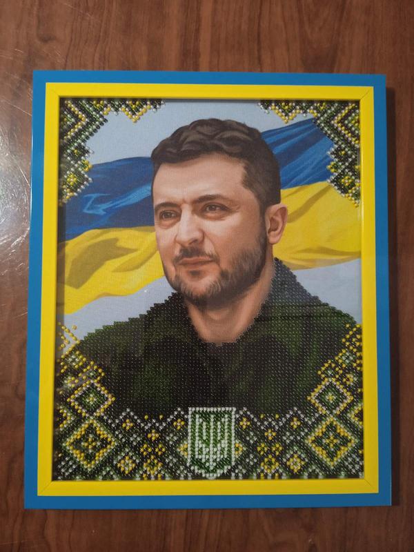 Ручна робота, портрет Президента, вишивка бісером. Заміри 22*26,5. Відповім на всі питання, пересилаю НП, Укр поштою. ТОРГ доречний.