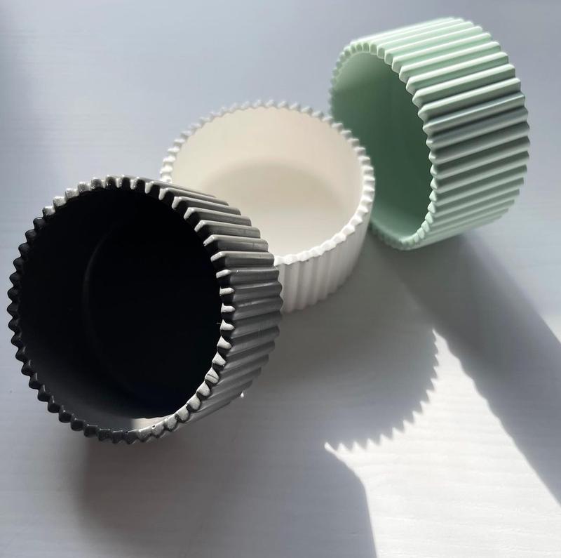 кашпо из гипса. размеры : высота 3.5 см , ширина 8 см примерный объем 175 мл цвета: белый , черный, мята продажа от 2 х штук цвет изделия может немного отличаться от фото