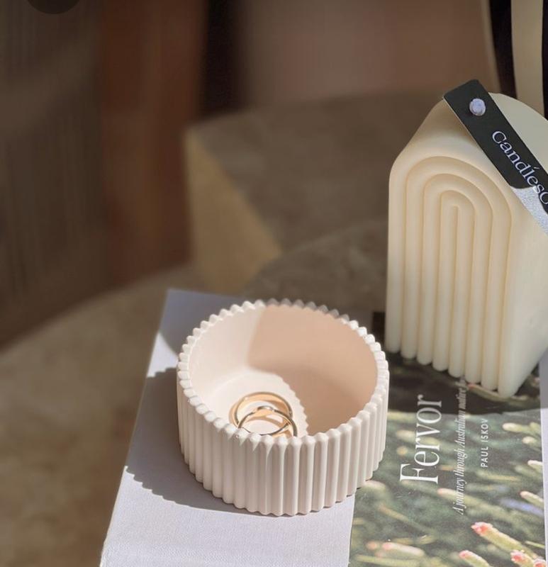 кашпо из гипса для свечей\мелочей\украшений. размеры : высота 3.5 см , ширина 8 см примерный объем 175 мл цвета: белый , бледно-персиковый продажа от 2 х штук цвет изделия может немного отличаться от фото