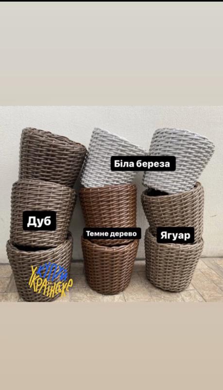 Кашпо, вазон ручної роботи з штучного ротангу. кашпо для декоративних і хвойних рослин. Чудово підійдуть для озеленення тераси, балконів, двору. Цей матеріал не боїться світла сонця, ні морозу, ні дощу. Літраж кашпо 5 л- 300 грн 10 л- 400 грн 12 л- 500 грн 16 л- 600 грн 20 л- 700 грн